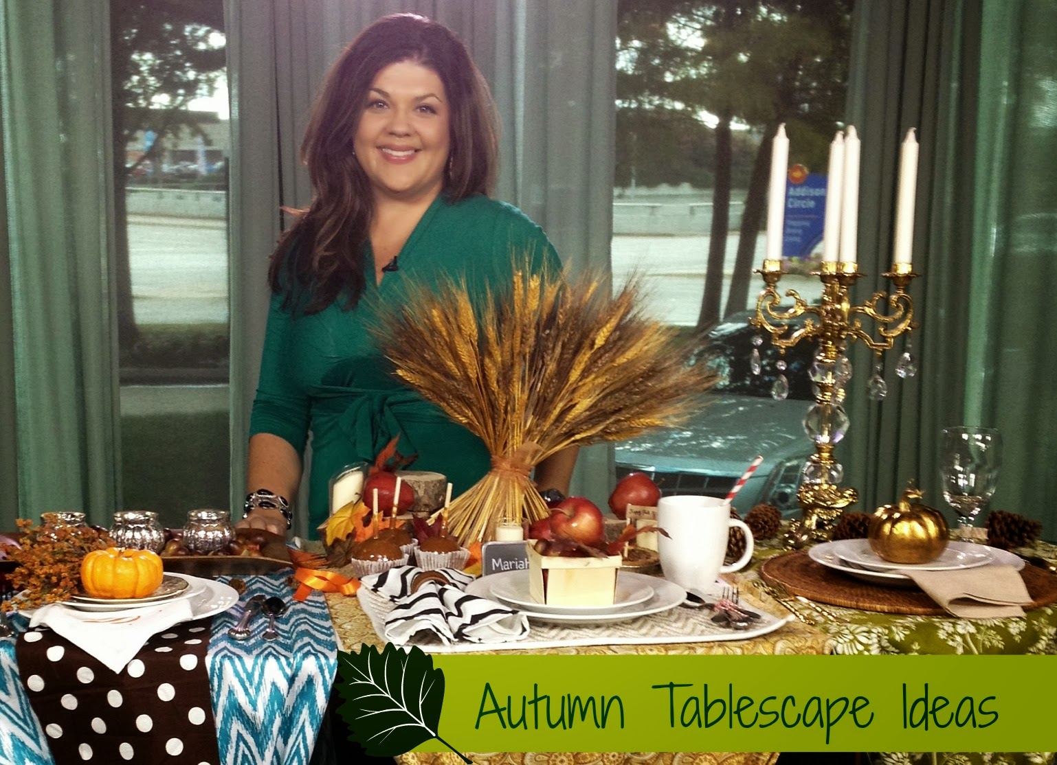 Actually, when I was asked to do two segment on Autumn tablescapes, I knew I need to bring in some “reinforcements” to show viewers it is possible to create functional, beautiful displays that aren’t just pretty, but memory making as well. So I rang up one of the most amazing local DFW event goddesses and bloggers, Mariah from GigglesGalore.net, to put together a segment that would make Pottery Barn jealous.