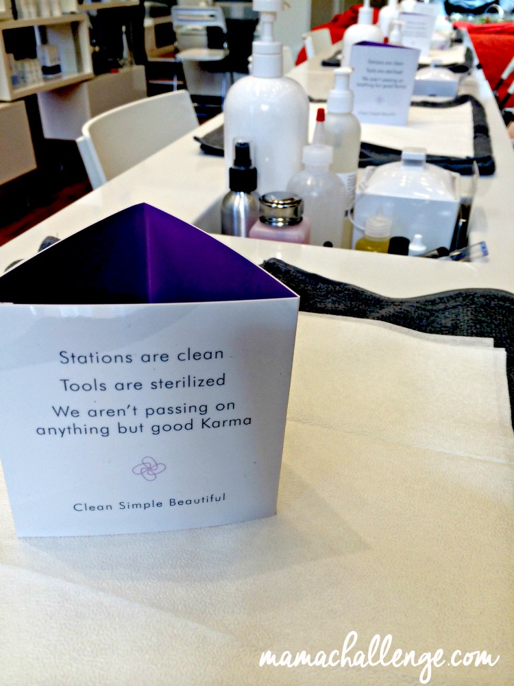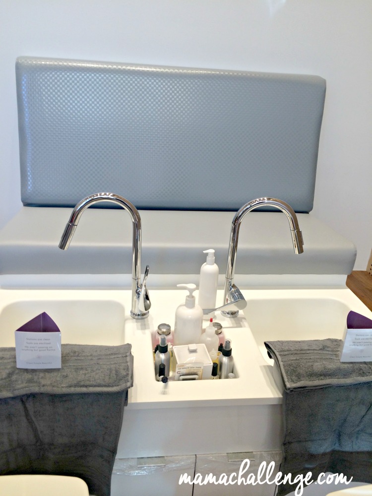 Any scrub or body cream product used paraben and sulfate free. All nail lacquer on the polish wall is at least 3-free (no formaldehyde, dibutyl phthalates or toluene), and their own MiniLuxe brand polish is 5-free (also excludes camphor and formaldehyde resin).  Even the paint on the walls is handpicked to protect you from volatile organic compounds (VOCs).