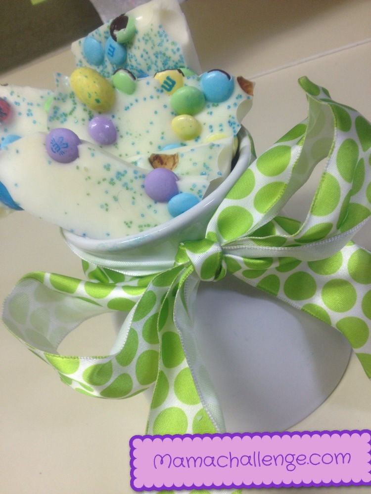 Using my new skills as the Microwave Mama, the boy and I decided to cook up what he called “Easter Day Bark.” Needing only three ingredients and some microwave action, I was going to put together a video to show how easy it was to create this tasty and cute Easter treat. However, my son asked if he could do a video, too so I let him go.