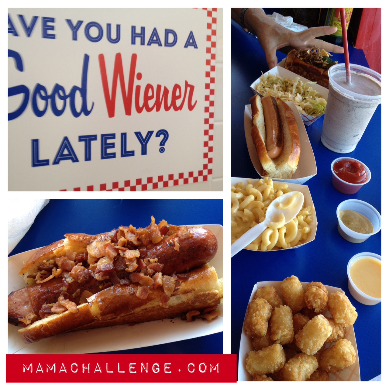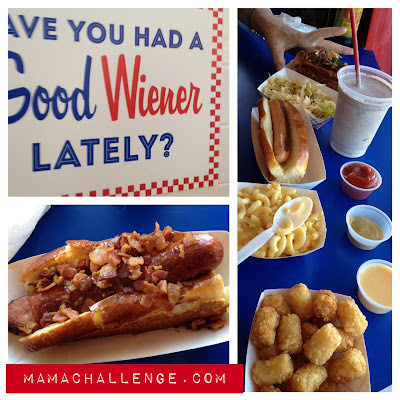 Wow – it was crowded and only on a Tuesday at this kitchy, little diner spot. But we bellied up to the line and made our way through to make our first order for a Oreo Milk Shake (we decided if we were going to enjoy this experience, it was going to include the whole enchilada.) We then checked out the creatively concise menu and chose to get a little of it all: